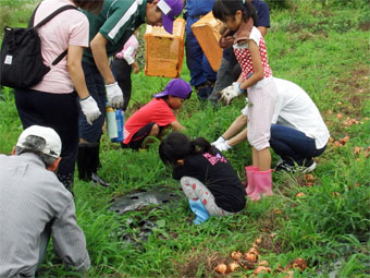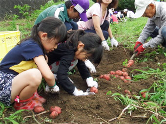 収穫時期をむかえた数種類のジャガイモを掘り起こしました。