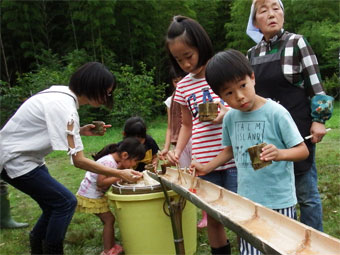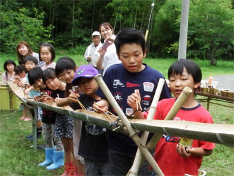 お昼は今年初の流しそうめんを皆で楽しみました。