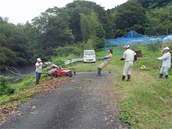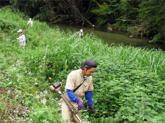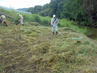 土手の草刈りをしました。