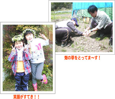 苗箱に土をいれて、種弧を隙間なくびっしりとまき、薄く土をかぶ間に、花飾りを作って遊んでました。