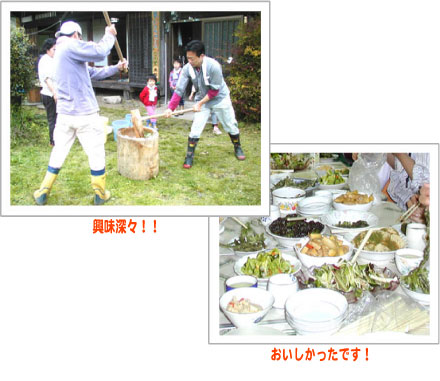 よもぎ餅、たらの芽・うどの葉のてんぷら、サラダ、竹の子ご飯、竹の子の煮物、うどのぬた