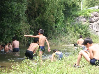 ![]() 水のかけっこで楽しかったよ。 小さな魚もいっぱいいました。(川遊び) |