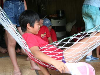![]() わー らくちんで気持ちいい。 うちにも欲しいな。(ハンモック) |