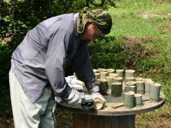 ![]() 朝早くから、手作りの竹製コップつくり 子どもたちが喜んでお土産に。 |