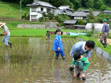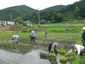 作業は午前中、田んぼに出て、植えつぎ。田の草取りでした。