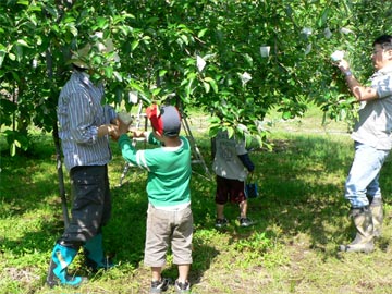 午後からはりんご(陽光)の袋かけをしました。 そして野菜の収穫。