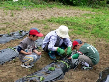 さつまいもの苗、かぼちゃの苗植えまでやったよ。
