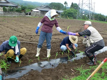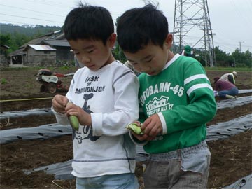 ![]() 大豆の種まき。ぼくも播いたんだ。 |