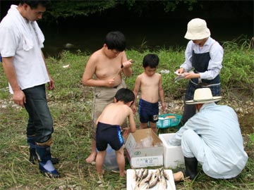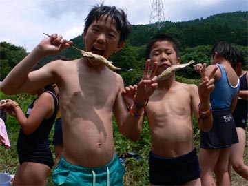 ![]() 魚を串に刺すのって簡単そうで難しいよ |