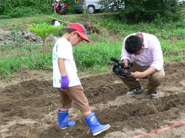 西上渕農場にそばの種まきをしました。作業の様子をJWAYケーブルテレビが取材をして帰りました。