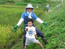 稲の間に生えてきた元気の良い雑草を抜く作業をしました。