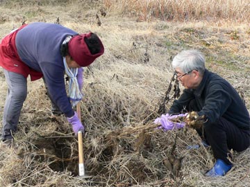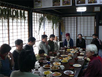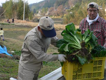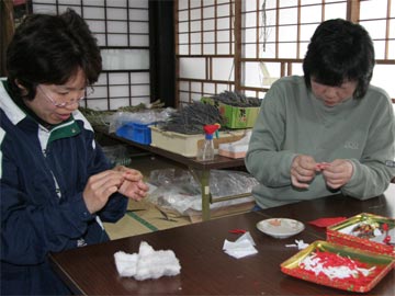 | 今日は2006年最後の活動日でした。 全員参加で「新年のしめ飾り作り」と「野菜およびりんご畑整備」の二班に分かれて作業しました。 しめ飾り班は今日仕上げないと新年に飾れない為、 「優しい指導者の苛立ちの声?」 と 「会員の無言で必死な様子」 が対象的でした。 (指導者に言われたこと理解出来ても手が動かないそうです) 結局、しめ飾りは完成せず24日も引き続きやることに・・・・・。 畑整備班は 「落下したりんごを埋める穴掘り」 に息切れしました。 また、今日は「東京新聞」の取材も入りました。 一年間色々な苦労もありましたが楽しく賑やかに過ごせた事に感謝したいと思います。 新年も明るく楽しく元気に活動しましょう。 |