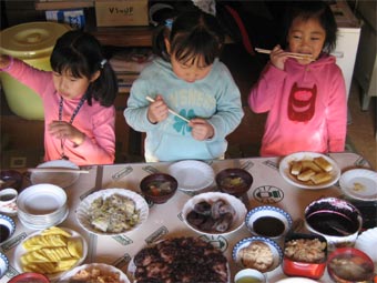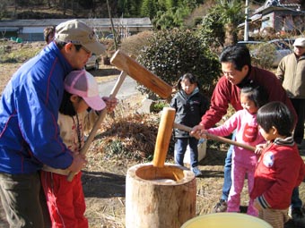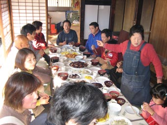 もちつき、繭玉つくり、そしてご馳走を食べて 「今年も頑張ろう!」