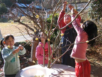 1月j15日 この日は小正月。夢ひたちファームの本部では繭玉祭りがありました。