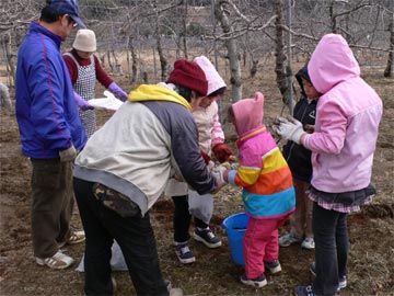 ![]() みんなでリンゴ園に堆肥入れ |