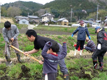 新入会員を迎えて入農式を行いました。春は農作業の準備の仕事が一杯あります。