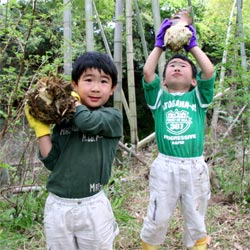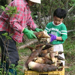 最後はお楽しみのタケノコ掘りでした。かご一杯の竹の子をみんなで分けて