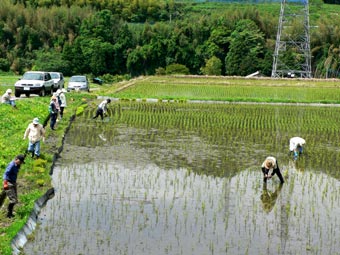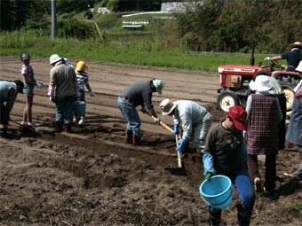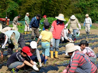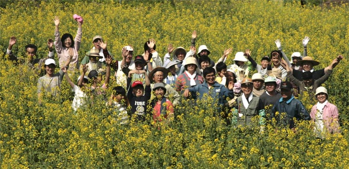 | きょうは「夢ひたちファーム なか里」 「ひたち農業探検少年団」 「なか里丸ごと体験オーナー」一緒になっての農業体験となりました。 それぞれの田んぼで苗の植えつぎ、りんごの木の根元に藁を敷く作業を進めました。 賑やかな昼食を囲んだ後リーダーの発案で菜の花畑へと移動、 いい香り漂う満開のお花畑で記念撮影。 ちょっぴり幸せ気分でした。 午後は西上渕農場でさつまいもの苗植えをしました。 |