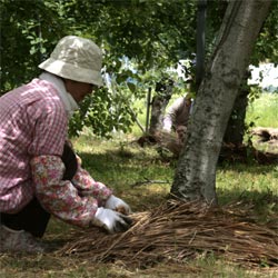 | 藁敷き 新兵器?扇風機つき こんなでかい芋虫いた | ||