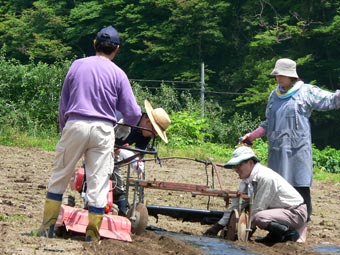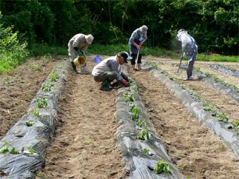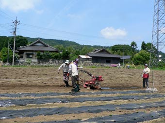| 梅雨入りしたばかりの週末はカラッとした晴天に恵まれ農作業日和となりました。 岡町農場へ堆肥を運んで散らしマルチを掛けとうもろこしの種を撒きました。 腰を屈めることなくマルチを掛けられる新兵器が登場し楽に作業を進めることができました。 午後はじゃがいも、玉ねぎ、紫玉ねぎ、大根を収穫し ヤーコン、ズッキーニー、かぼちゃの苗も植えました。 きょうも一日お疲れさまでした。 |