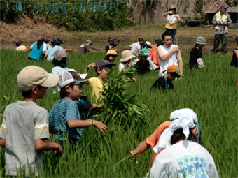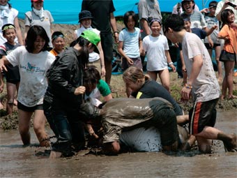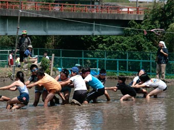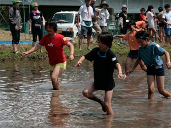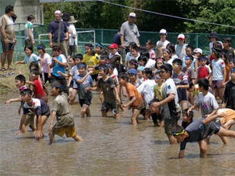 | 炎天下、夢ひたちファ−ムなか里では、「ひたち農業探検少年団」「山中友子隊」 「ボ−イスカウト」合同で「どろんこ運動会」及び「田の草取り体験」を行いました。 場所は下深荻町の田畑、中里交流センタ−を利用しました。 |