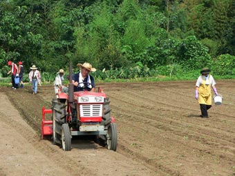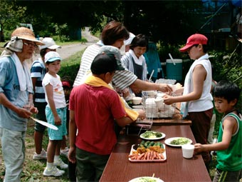 | 予報は曇りだったのが、時々晴れるお天気になりましたが、蒸し暑い日になりました。 午前中は菜種畑の整理をする班、そば蒔きの準備をする班、それに 流しそうめんの仕掛けをつくる班に分かれての仕事でした。 一方農業探検少年団は収穫ツアーでした。 午後はそば蒔きをして一日の仕事を終えました。 ほんと、むしむしした日でしたね。御苦労さまでした。 農業体験少年団のページもご覧になってください。 |