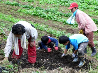 | 昨夜の雨も朝にはすっかり上がり、好天に恵まれた活動日和となりました。 夢ファームもまさに「収穫の秋」真っ只中。 「そば刈り」「脱穀」「さつまいも堀り」「秋野菜の収穫」「りんご狩り」と続き 子供達は「カブト虫の幼虫」までみつけてしまいましたよ。 それぞれに収穫の喜びをかみしめての一日でした。お疲れさま! |