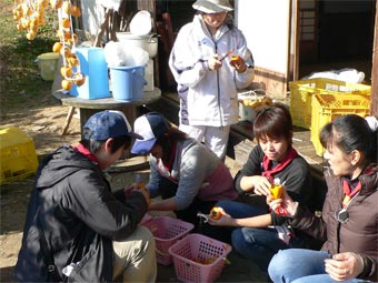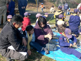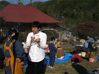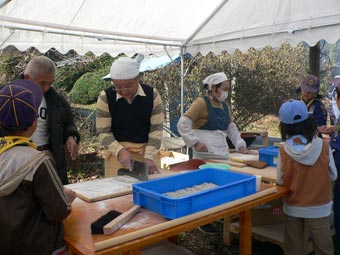 | ぐーんと冷え込んだ早朝8時に収穫感謝祭の幕が開きました。 リーダーより日程などの説明を聞き、自分たちの持ち場へ付きました。 ボーイスカウト、農業体験少年団、それに来賓のお客様など100人以上。 蕎麦打ち、干し柿作り、焼き芋、餅つき、縄もじりなど様々な体験も交えての とても賑やかな収穫感謝祭となりました。 お祭りの御馳走も豊富で、つきたてのお餅、 打ち立ての新そば、山の幸のきのこ汁 海の幸チャンチャン焼きまで登場しお腹いっぱい! 美味しくごちそうさまでした。 最後はビンゴゲームで楽しみ、その後あと片付けをし、 きょうの収穫感謝祭を終えました。 皆さま!お疲れさまでした。 |