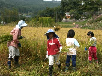 ![]() 落ち穂拾いでお米の大切さを体験 |