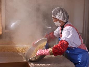 | 立春も過ぎ春の足音が遠くから微かに聞こえてくるようなそんな季節となってきました。 きょうの活動日は「味噌作り」です。 大豆を蒸しあげて潰し麹を混ぜてと、一連の工程に添って 普段は夢ファームのシェフですが、今日はお味噌づくりの先生となって 親切丁寧に教えていただきました。仕上がりが待ち遠しいですね。 午後からは食用ほおずき畑の枯れ草を刈り、きれいに整理しました。 |
