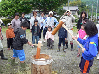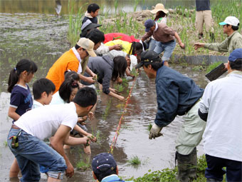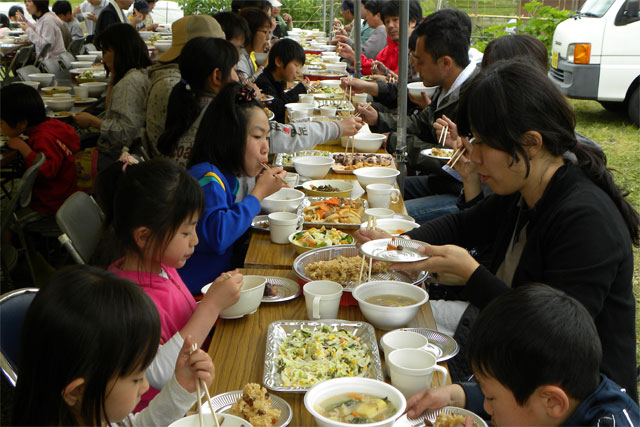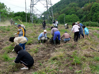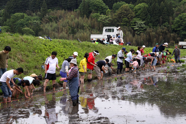 | 降らず照らずの作業するにはもってこいの天気となりました。 ひたち農業探検少年団の入団式をすませた後、 ツアーのお客さまも一緒に田んぼへ移動し田植え体験です。 「新しく田植えたびを家族3人ぶん買っちゃったよ」 と言う会員さんもおり 張り切ってる! お陰さまで予定より早めの終了となりました。 お楽しみの昼食は餅つきをしたあとテントの下で賑やかにテーブルを囲みました。 午後はとうもろこし畑を整理。お疲れさまでした。 |