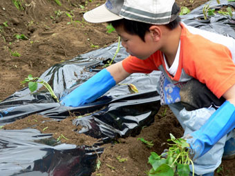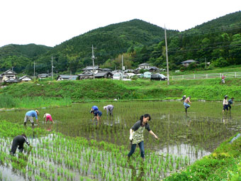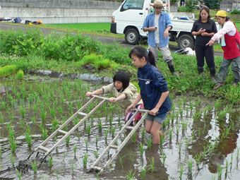 | 梅雨空を思わせるような空模様のなか、早苗が育つ田んぼに出て 田の草取りの作業です。 まだまだ細かい草ですが、 手でガラガラかき混ぜて取ったり機械を使って除草しました。 午後は西上渕の畑にサツマイモの苗を植えました。 今年は乾燥イモにする種類もあり収穫が楽しみですね。 |