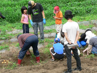とうもろこしの手入れやまだ残っていたじゃがいもを掘り起こす作業をしました。