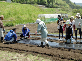 また、畑を耕してマルチを掛けとうもろこしの種も撒きました。