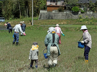 3ヶ所の田んぼに肥料をまき、草刈りをして田植えの準備です。