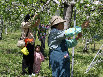 りんごオーナーさんは花摘みの作業でした。