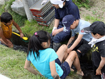 ![]() 足を洗いながら 実は水遊び? |