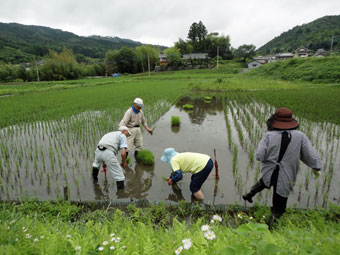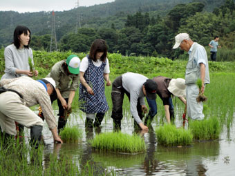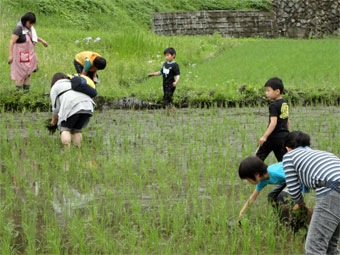 ![]() なれた手つきで田植え体験も二回目 |