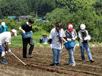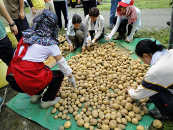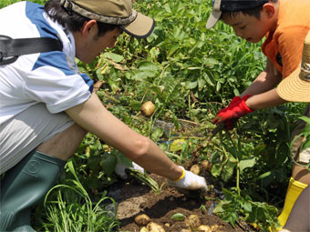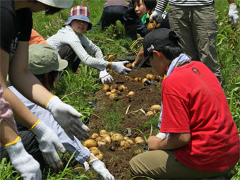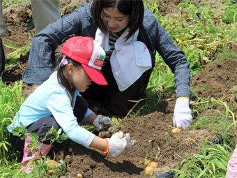 東京からの体験のお客様も一緒に、賑やかに新じゃがいも堀り、