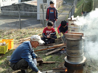 ![]() 屋外でしっかり蒸します |
