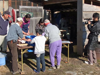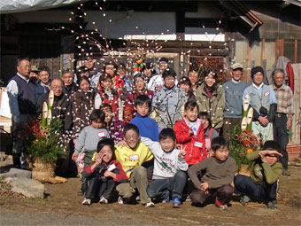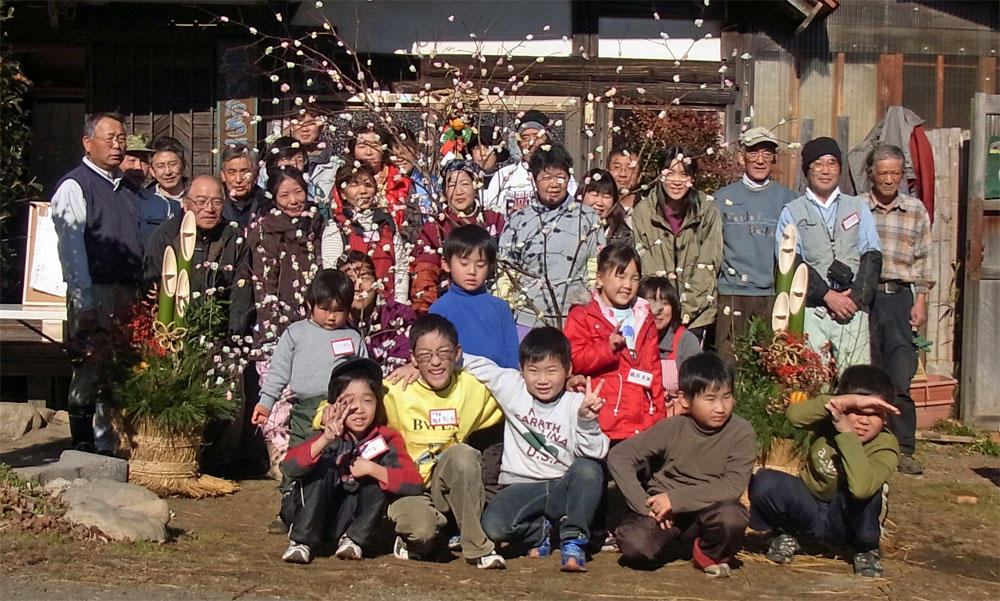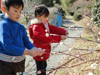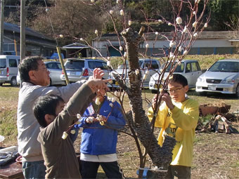 ![]() 大人も一緒に餅の花を咲かせます |