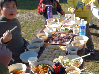 ![]() お昼は立食 |