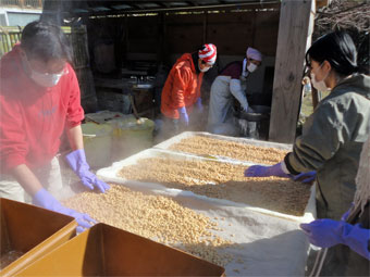 他の人達は本部で手作り味噌仕込みの作業をしました。