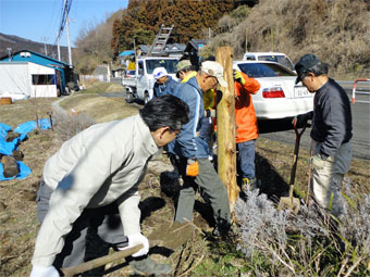 男の人達はツリーハウスに使う木出しと道作りを、