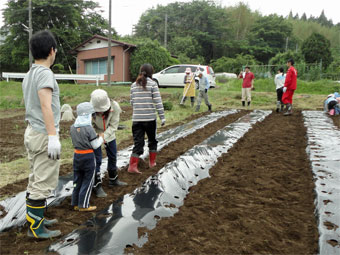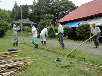 とうもろこしの種まきやとうもろこしの苗植え、草刈りや竹割りと作業は進められました。